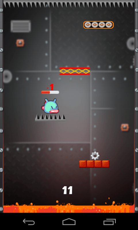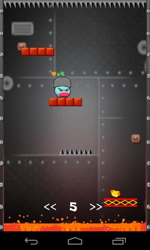 Tap the right half of the screen to move to the right and tap the left half of the screen to move to the left. It’s your job to jump off the platforms and last as long as possible without getting crushed above or burned below.