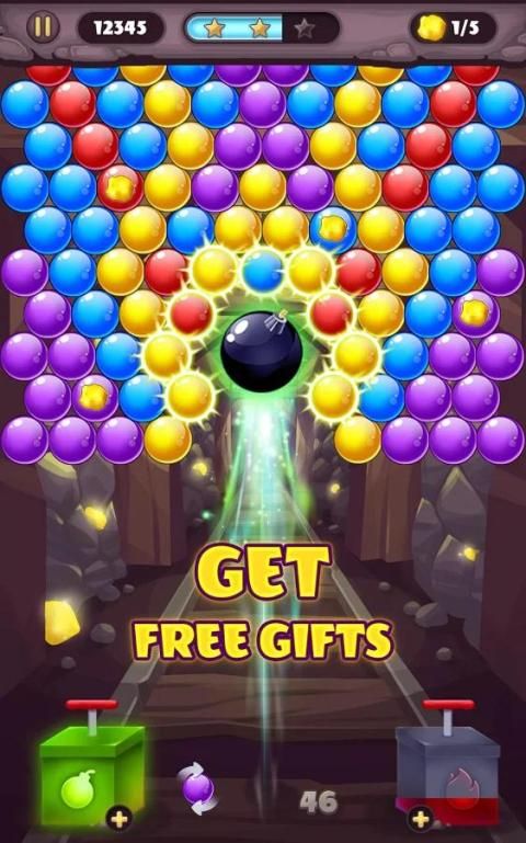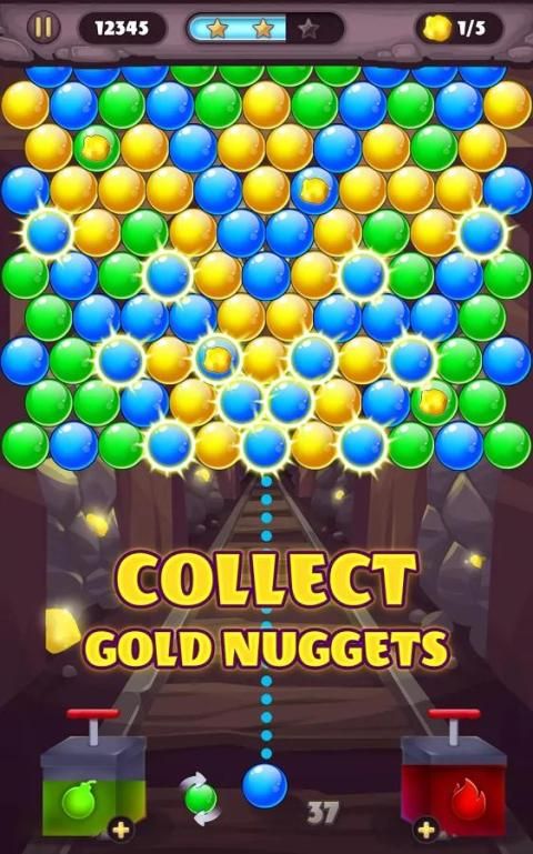 Fans gelembung bermunculan permainan puzzle yang menarik pasti akan menikmati petualangan pertambangan emas yang fantastis ini. Tag bersama dengan para penambang, menggali harta karun emas dan menyelamatkan nugget emas dari penjara gelembung mereka.