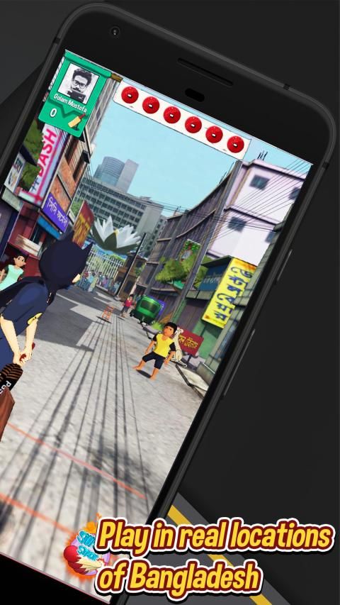 Goli Cricket lets you create and customize your very own goli/alley cricketer to play against real opponents in real time through Player vs Player (PvP) multiplayer matches and win real life rewards!!! You can play with your Facebook friends or with random opponents in familiar locations all throughout Bangladesh in gorgeous 3D stages and characters. Since you are playing in the streets, be weary of bystanders, chickens, dogs, and much more! Sometimes breaking glasses of a building or a CNG will reward you with runs as well! Use your Super Stack advantage to stack 3 bounces and score more than 6 runs in a single ball!