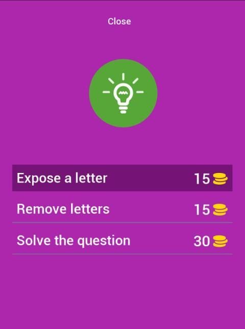 • Petunjuk "Hapus huruf" akan dikenakan biaya (koin): 15