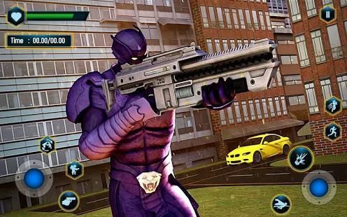 You are a superhero with super strength, you are willing to make good deeds and destroy all the bad guys. The story starts when your old enemy comes to the city. Many years ago he killed your dad to obtain a secret about the exceptional metal. Now is your turn to revenge! The bad guys and mafia gangsters are using instant killing sniper shooting and doing robbery in banks, shops and houses of mad city. US army and police are busy in operation security so they are unable to do anything against such gangsters. In this situation use your well developed hero fighting panther abilities to safe the NY city in Grand Immortal Panther Hero vs Flying Iron Robot 2018. Defeat gangsters as eminent panther superhero and utilize your instant killing gangster sniper shooting skills and highly skilled super hero or well known flying panther exceptional abilities of super hero to eradicate all city lords mafia and successfully accomplish crime city rescue mission 2018.
