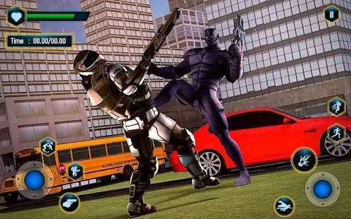 Grand Immortal Panther Hero vs Flying Iron Robot and fight crime and with super panther vs iron flying hero battle skills in this wild panther superhero war city game. Grand Immortal Panther Hero vs Flying Iron Robot is referred as a real fighting warrior for city survival. This is Wild flying superheroes who is not afraid of any criminal, city mafia, gangster, robbers, drug dealers or terrorist. It’s time to become super panther flying hero the saviour of grand city and help them out in this iron superheroes vs superhero panther hero games. The fighting panther simulator warrior can fist fight, fly around and shoot down the criminals on the scene. The crime rate is on the peak in wild panther superheroes war city. The super panther flying battle has to do something now to save the futuristic grand city. Civilians are scared. People are praying for a Flying Super Hero who can save them from the antagonist atrocities in this superheroes iron vs panther City Battle. Become the real superhero and save the people from these gangsters and become superheroes fighting squad. You are in for some really tough kung fu fight fighting games.