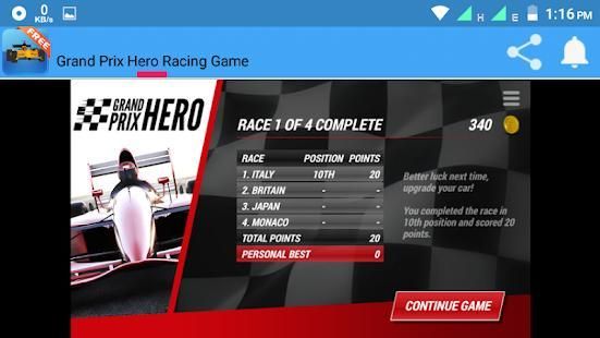 This app offers a very popular online racing game named grand prix hero 2 .In this game , aplayer has to collect coins by his racing car.