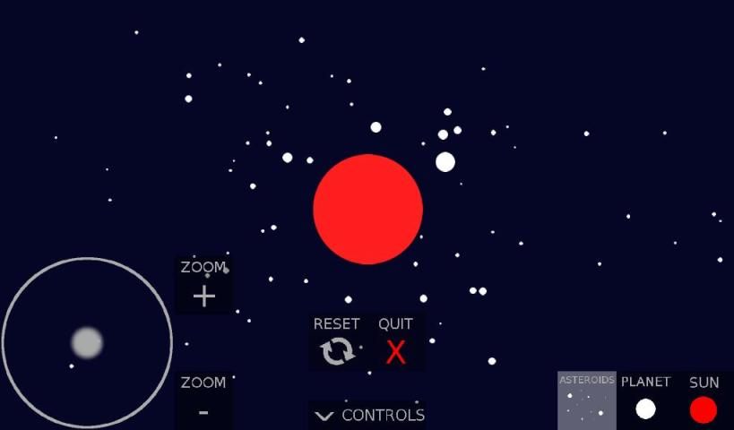 N-Point Gravity Simulator adalah simulasi realistis di mana semua poin menarik satu sama lain: bahkan asteroid terkecil memiliki medan gravitasi sendiri yang dapat mempengaruhi bahkan matahari besar jauh dari itu.