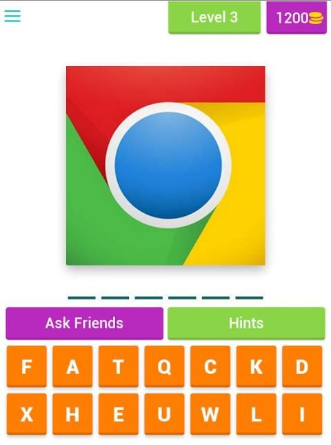 1. Tebak logo ditampilkan pada layar dengan mengisi huruf yang tersedia