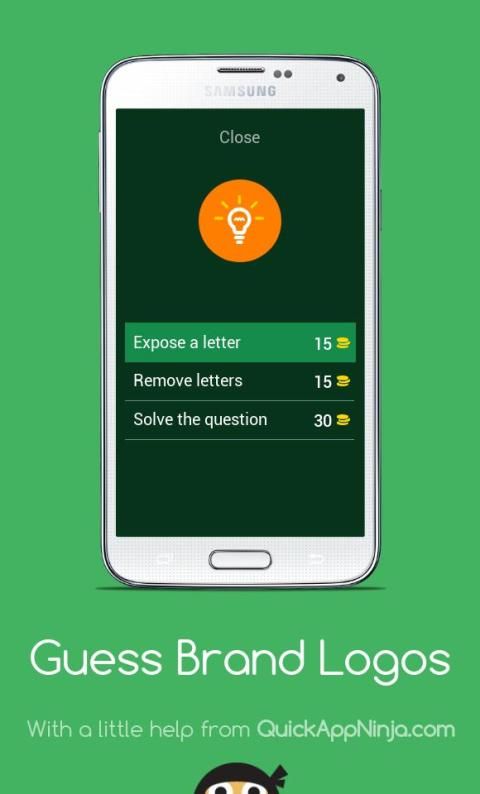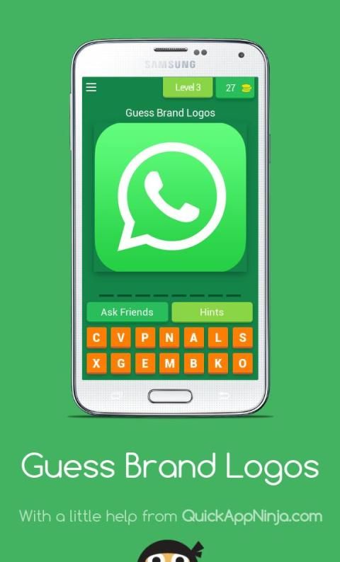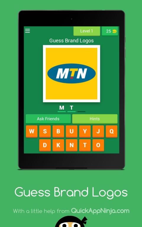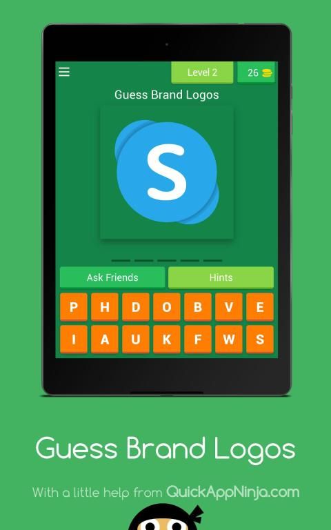 - Guess the logo displayed on screen by filling in available letters