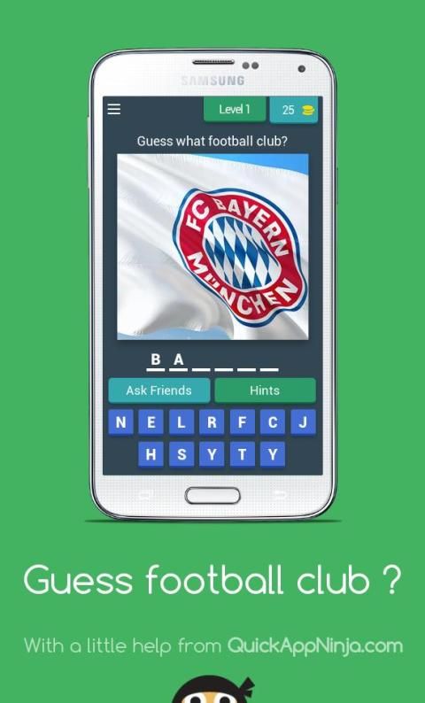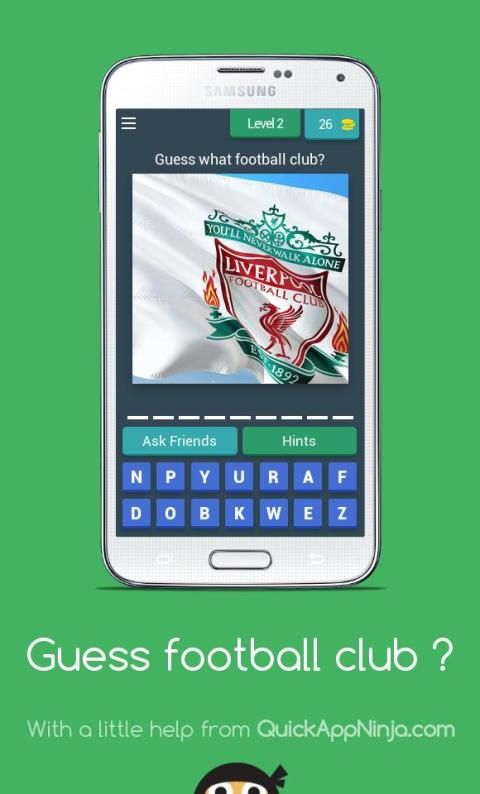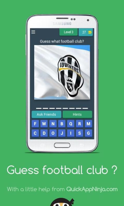 Guess the name of the football club with the display image on the screen available help for the user if you can not answer it.