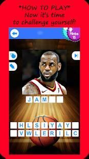 Nama pemain NBA Basketball terkenal menggunakan gambar bantuan. Ini adalah basket NBA kuis trivia.