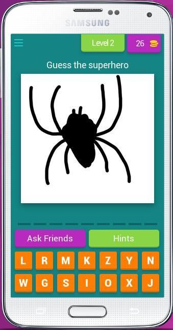* Challenge your friends in on any social network to see who Guess the most SuperHero.