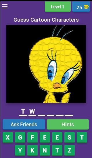 Lihatlah pic dan tebak KARTUN! Ini sederhana dan gratis untuk dimainkan dan sangat MENYENANGKAN! Game ini akan membawa Anda dalam perjalanan untuk memenuhi kartun terbaik dalam sejarah hiburan!