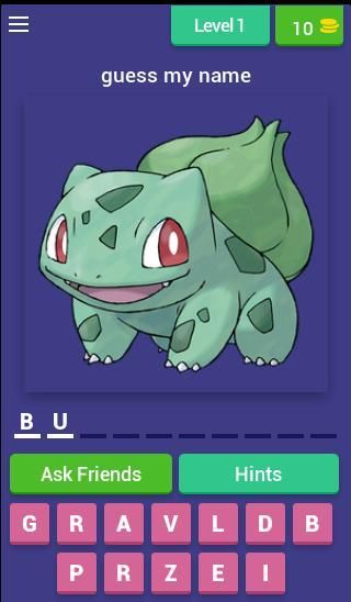 - mencoba menerka semua nama-nama Pokemons sesuai gambar
