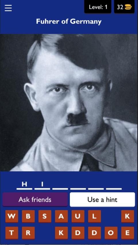 There are a lot of personalities (evil or not) whose names you have to guess. Once you have passed all the levels you will surely be able to take a big note of history!