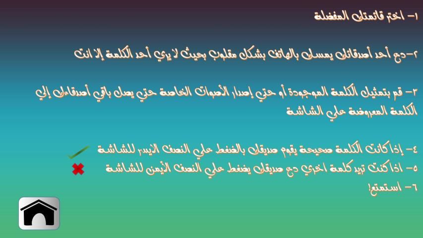 4- إذا كانت الكلمة صحيحة يقوم صديقك بالضغط علي النصف الايسر للشاشة