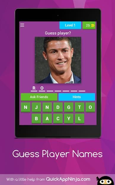 Tebak palyer adalah permainan lucu dengan lebih dari 50 tingkat dapatkah Anda menebak pemain dari gambar? Beri nama pemain dengan petunjuk gambar pemain Uji pengetahuan Anda tentang kuis olahraga ini ..
