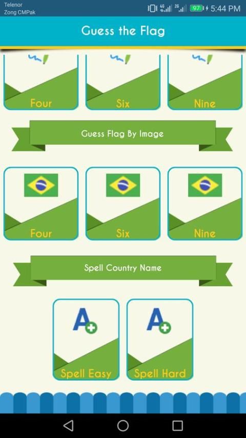 3. Guess Flag oleh Nama Negara (Empat, Enam, Nine)