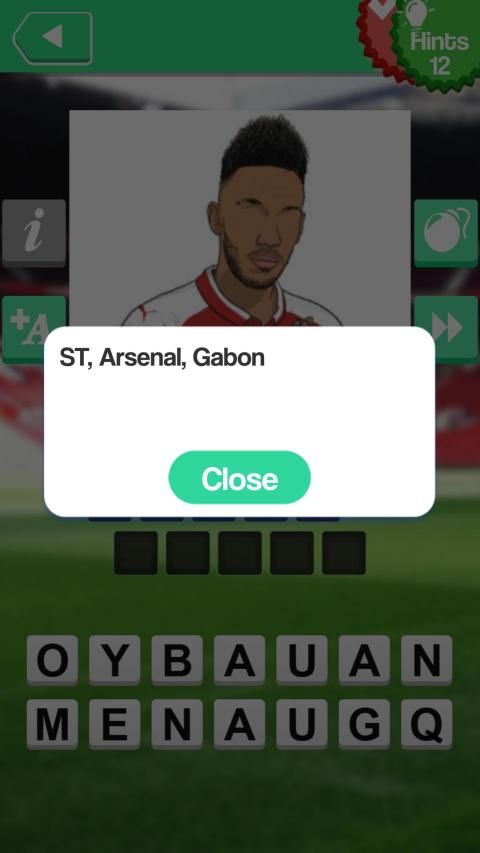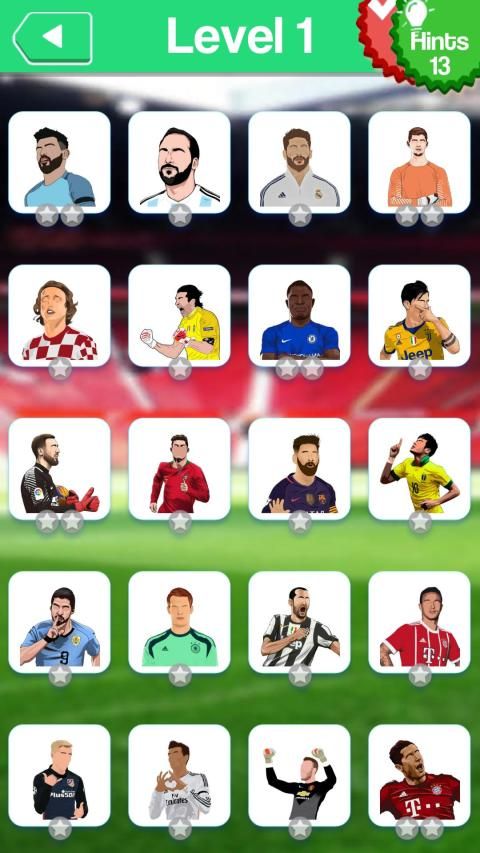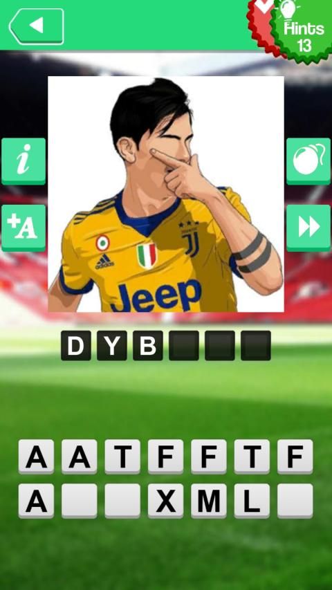 * Anda harus menjawab pertanyaan untuk lulus setiap level dengan menemukan huruf yang tepat di ruang yang tersedia yaitu nama pemain sepak bola termasuk mereka yang berpartisipasi dalam Piala Dunia sepak bola.