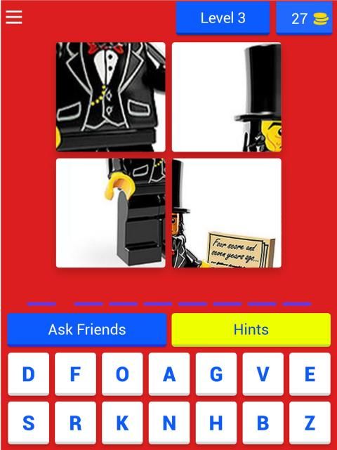 Ini adalah game Trivia yang sangat bagus dan imut di mana Anda harus menebak Legofigure berdasarkan empat gambar. Sangat mudah dan sangat menyenangkan untuk dimainkan.