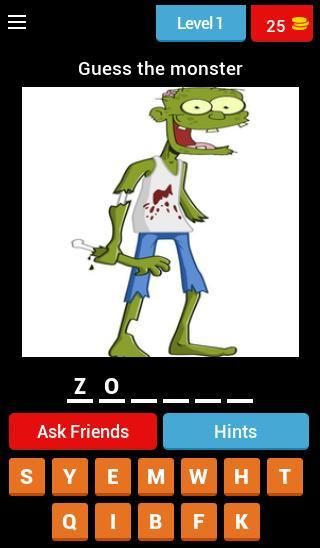 Banyak gambar yang besar siap untuk ditebak dalam kuis rakasa ini termasuk elfs, goblin, vampir dan banyak lainnya. Jadi kira rakasa dan mendapatkan hadiah koin.