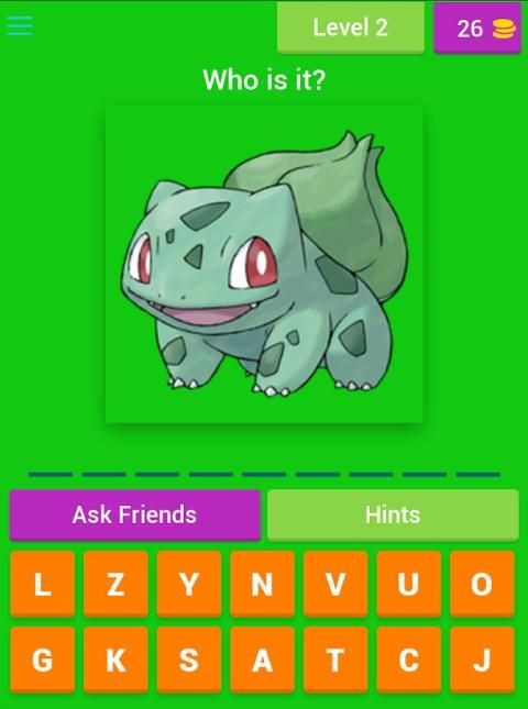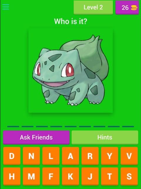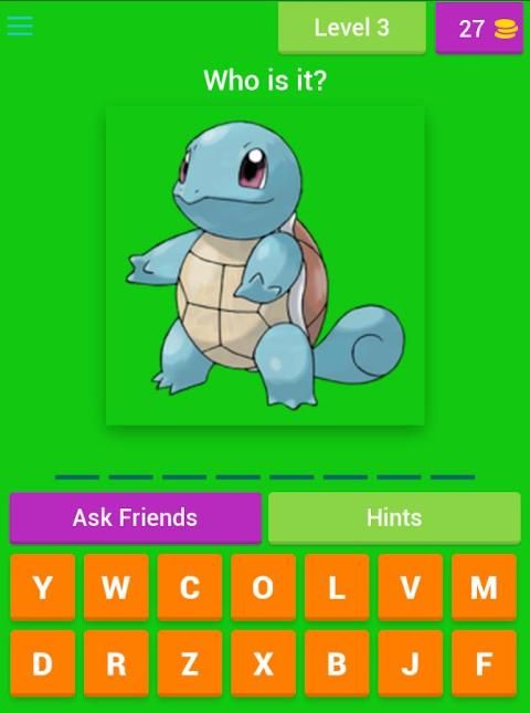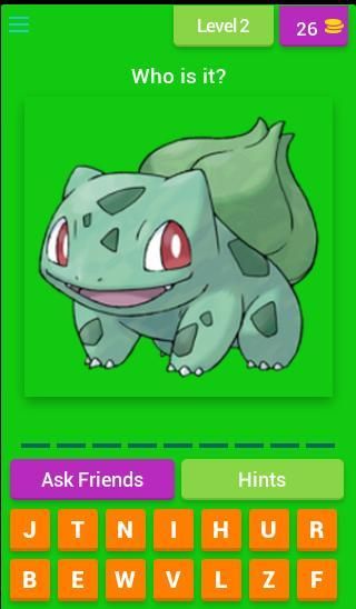 nama karakter yang Anda harus memasukkan dalam bidang khusus yang ditunjuk, sedangkan untuk setiap nama permainan "Tebak Pokemon" Anda menerima sejumlah surat yang dapat Anda gunakan untuk mengetik nama.