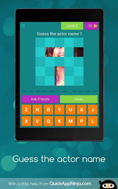 Anda mendapatkan koin yang membantu Anda mendapatkan petunjuk di ketinggian mana Anda memiliki pengetahuan tentang bioskop. Game Guess Name Quiz dirancang untuk menguji pengetahuan Anda. Untuk lebih menyenangkan Anda dapat bersaing dengan teman-teman Anda di kuis aktor film. Anda dapat merencanakan pengaturan kompetisi untuk sementara waktu atau cukup memeriksa seluruh kuis dan memeriksa di bagian akhir yang mencetak poin terbanyak dalam game kuis aktor.