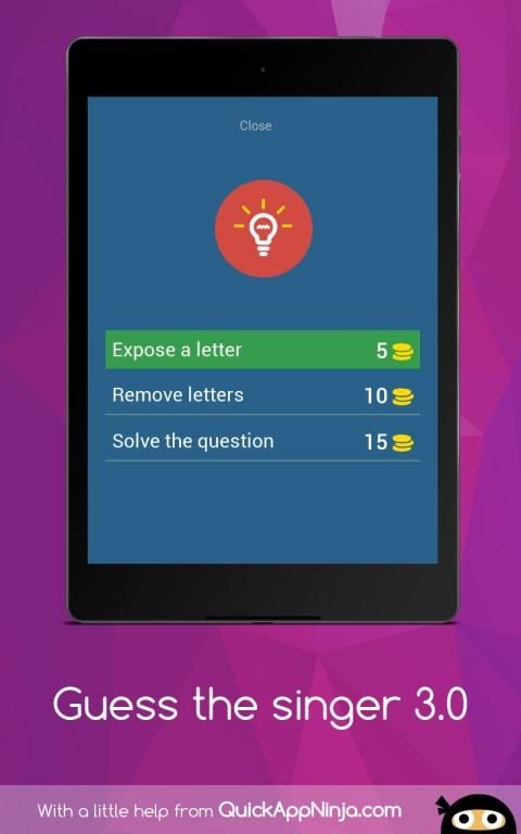 Open tiles and try to guess the names of the famous singers. Less tiles you open, more coins you earn.