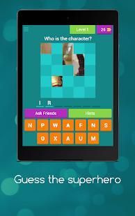 Apakah Anda memiliki apa yang diperlukan untuk menerima tantangan ini? Jika demikian, men-download game ini sekarang dan menguji pengetahuan Anda tentang Marvel, DC dan lain-lain.
