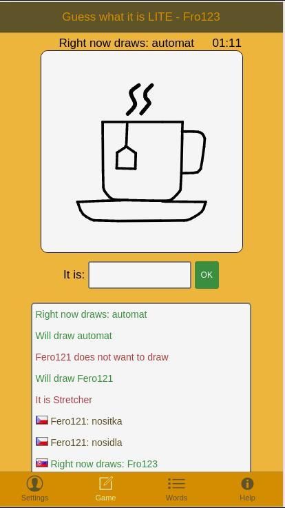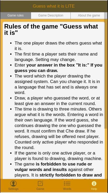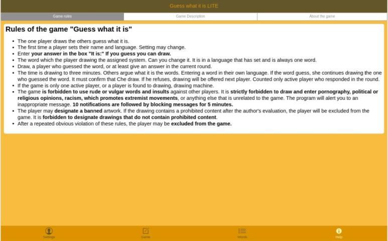 The player who draws receives word that will draw. The word is multilingual, every snake in the language that has been set.