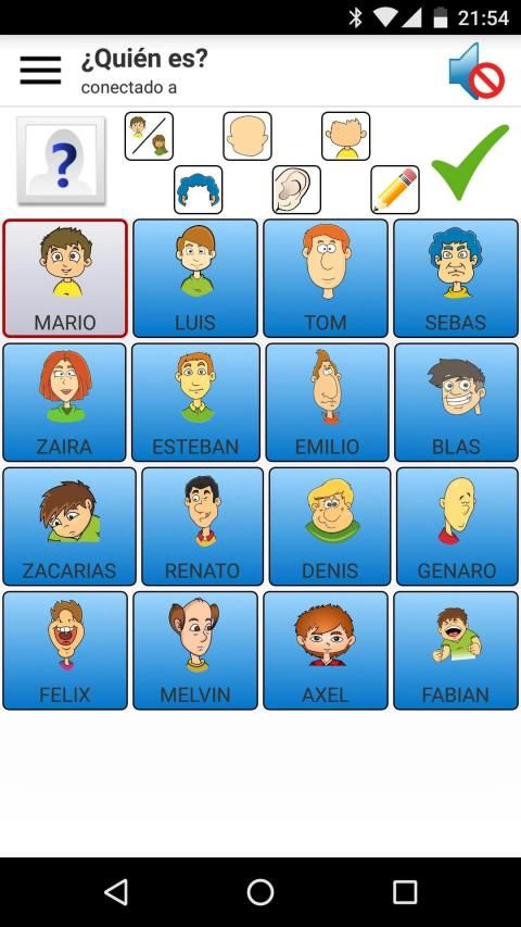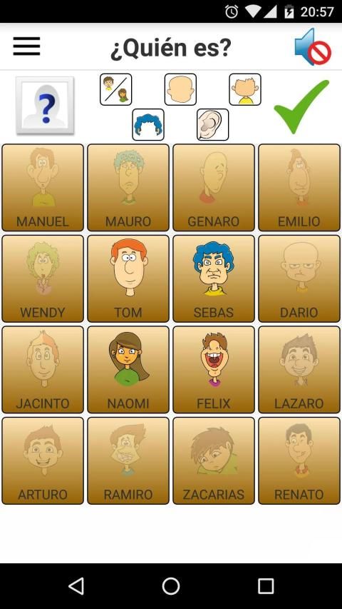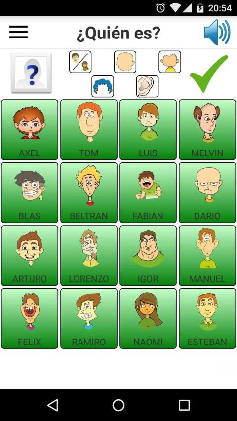 When you already know who the hidden character is, click on the green check icon on the top right of the screen. It will open a popup with the list of characters of the board that are still without cross and will have to select who we believe is the hidden character. If we have doubts, we can close the popup and continue asking questions.