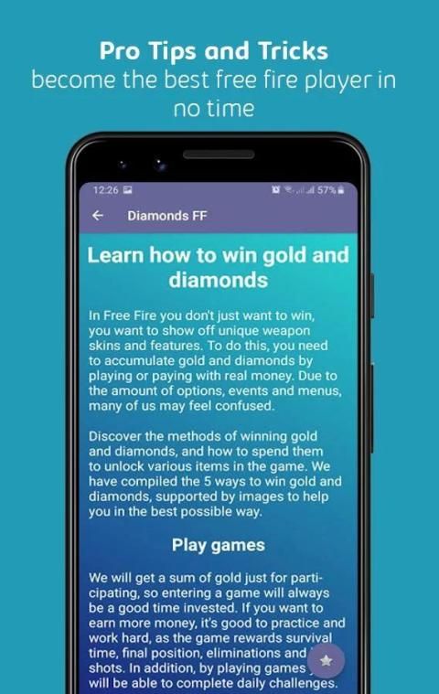 This application is informative. This is not a Free Fire hack and does not access any server, it can not verify user names, nor send or receive data from Free Fire or other parties. They are legal and safe tips for obtaining free diamonds for Free Fire, which work today and will be renewed over time.