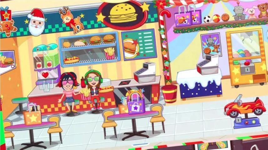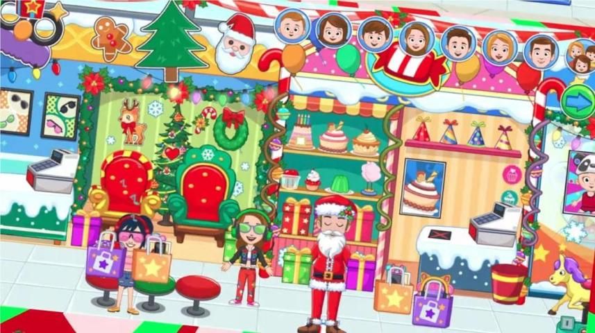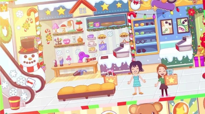 My Town: Shopping Mall di mana Anda dapat membuat liburan terbaik. Ayo kunjungi dan brig tas tote Anda dan mengunjungi salah satu dari banyak toko di rumah boneka untuk semua orang di daftar Anda, Anda juga dapat mengambil selfie dengan santa! apa mimpi natal Anda? ponsel baru atau tablet? Berhenti oleh toko ponsel di rumah boneka! Ada juga toko pakaian di mana Anda dapat mencoba pada tren terbaru, pakaian Bayi dan toko musik di mana Anda dapat mewujudkan impiannya bintang rock Anda. Pergi melihat dokter mata dan mampir ke toko kacamata. Ada JAM menyenangkan depan dengan 3 lantai penuh dengan toko-toko.