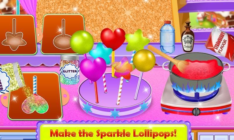 In the Lollipop maker section, you will be able to cook new style of lollipop with lots of sparkle and glitter on it.