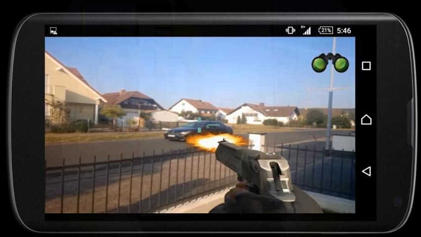 Augmented Shooter in Augmented Reality is a First Person Shooter Gun Simulator which let's you shoot with Pistole, M4, AK-47, Pumpgun, Shotgun, Sniper, Machinegun and many more weapons.