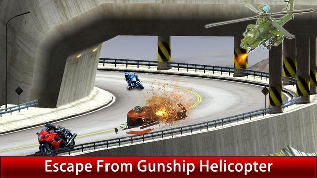 Alasan utama kejahatan ini adalah bahwa orang-orang kehilangan pekerjaan, mereka mengambil kegiatan kriminal sebagian karena mereka kehilangan keberanian untuk meningkatkan masa depan mereka. Karena alasan ini, kejahatan ini menyebar di seluruh dunia. Berkendara sepeda Anda dengan kecepatan tinggi Anda menghindari dari rintangan, bangunan, lalu lintas dan melintasi tikungan tajam dengan keterampilan mengemudi Anda. Anda bisa menyelesaikan semua tingkatan dengan dalam waktu yang terbatas. Dalam permainan menakjubkan animasi ini modern, ada sekitar sepuluh tingkat menantang. Menampilkan kemampuan sepeda motor Anda kuat mengemudi melarikan diri dari Shooter helikopter untuk menjadi juara.