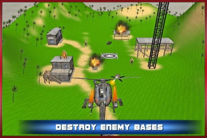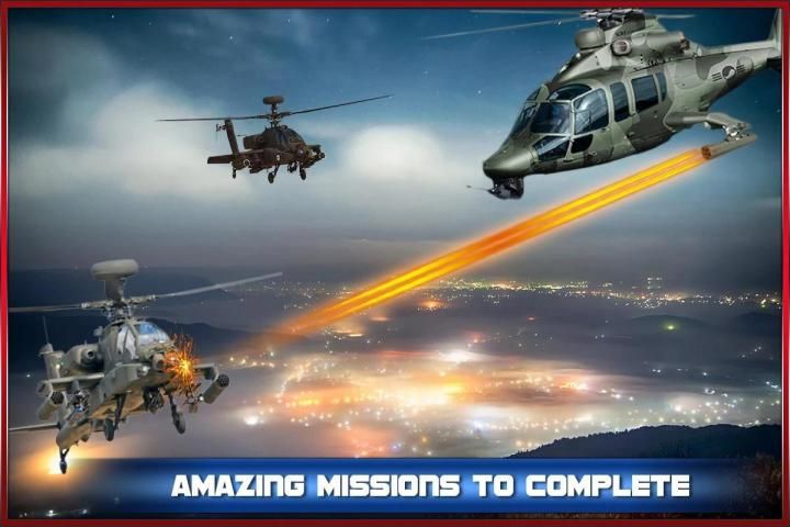 Situasi sengit di perbatasan dan jalan-jalan kota internasional dipenuhi dengan kekacauan. Kendalikan helikopter helikopter dan terbang di atas arena pertempuran dan kamp basis musuh. Musuh telah disimpan deposito besar dari hulu ledak nuklir dan beberapa truk pasukan besar, tank dan pesawat tomcat diparkir di musuh hanger.Your ada komando biasa, itu adalah tentara modern yang kuat dengan helikopter militer, jet tempur F18 dan infrastruktur pesawat besar. Misi Anda termasuk bertarung dengan angkatan bersenjata, helikopter tempur, dan pesawat tempur. Tujuan Anda untuk menghancurkan tank tentara, truk rudal, kapal tanker minyak dan bunker tersembunyi dengan pemboman berat. Setelah misi berhasil terbang kembali ke dasar Anda camp dan mendarat di helipad.