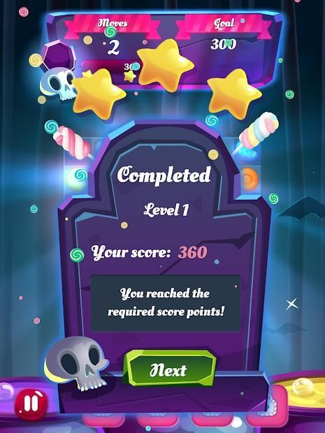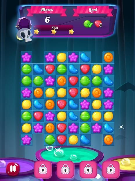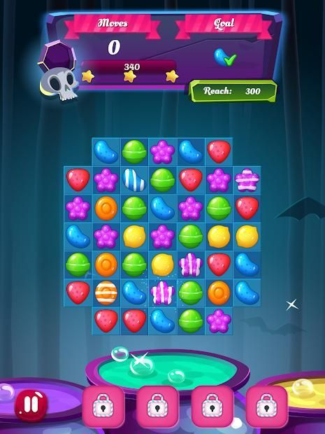 - Match enchanted items from Halloween such as skulls, pumpkins and poisoned apples to clear the board