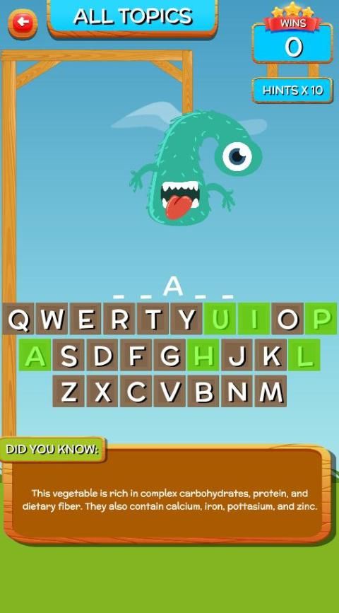 The game follows the standard rules solve the word before your monster man gets fully drawn.