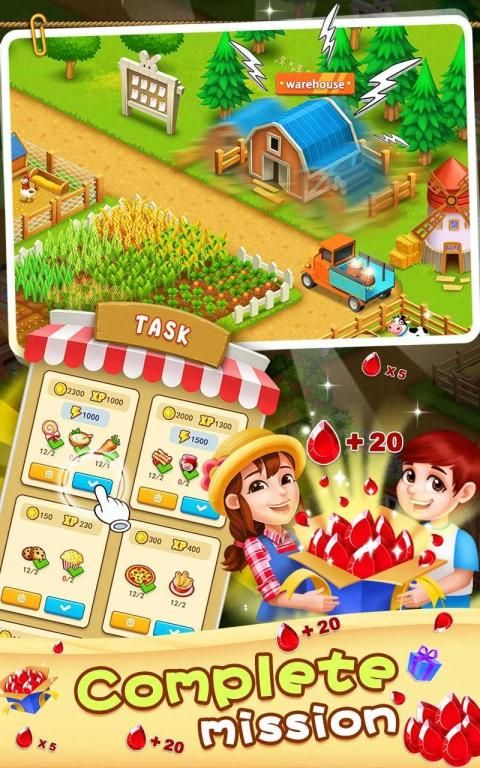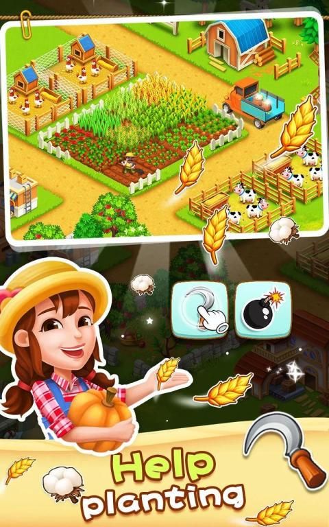 Idle all kinds of seeds, harvest crops and process them at your factories, fulfill your orders and sell goods to develop your farm in the town.