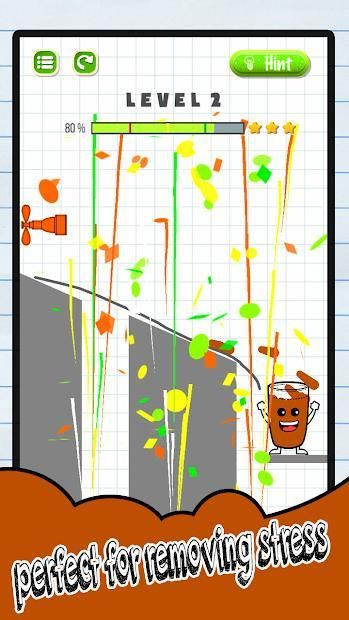 Salah satu alasan untuk memainkan game ini adalah hal itu mudah. Yang harus Anda lakukan adalah membuat kaca senang dengan mengisinya dengan cairan. Anda dapat melakukannya dengan menggambar garis. Setelah tingkat cairan yang dibutuhkan diisi dalam gelas, itu akan menjadi bahagia. Itu saja, Anda hanya perlu menggunakan kreativitas Anda untuk menemukan cara-cara baru untuk mengisi gelas.