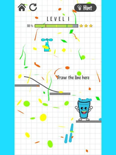 The Happy glass Draw lines is unhappy because it's empty. Your job is to draw a line to create the glass stuffed up with liquid and smile again!