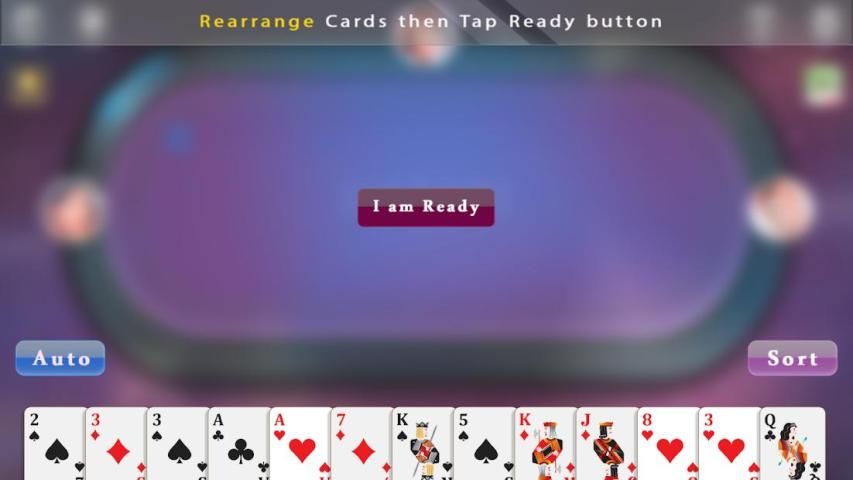 3. Players get a time to arrange their cards in order from higher to the lower.