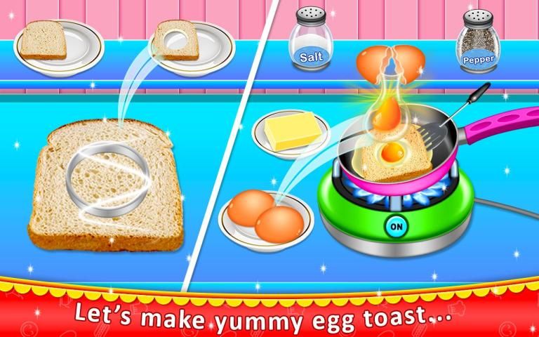 Come on! Let’s get start right now! Start by collecting the required ingredients, follow cooking instructions and at the end decorate your breakfast with fresh fruits and vegetables!You will see how fun and easy it is! You can enjoy the fun of making food just as your mom does in real life!