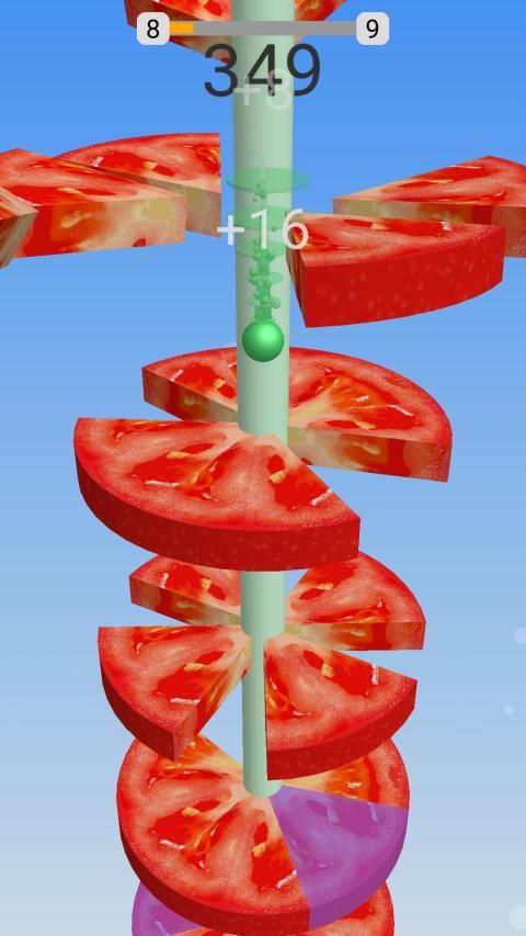 On helix ball jump You need to swipe the screen and cut Fruits into pieces by slice them with your jumping ball.