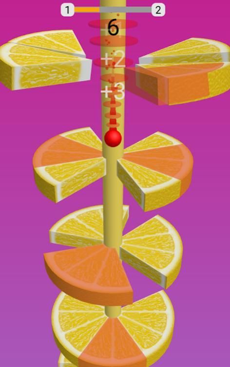 Geser layar untuk melompat bola dan jatuh melalui Helix Fruit Jump Crash Ball, potong irisan buah lezat dan Tetap tenang dan pergi sejauh mungkin!