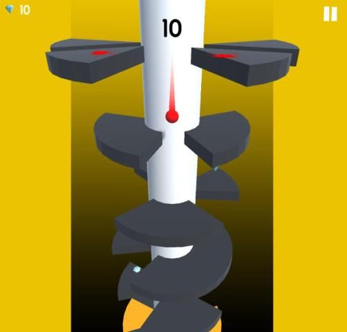 Helix Jump Jumping! memiliki gameplay adiktif dengan melompat bola dan helix labirin.