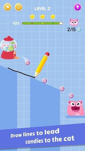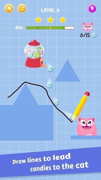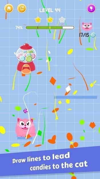 Your sister Mary went to a party and left you at home with her cat. Oh, what a traitor! To avenge her, we’ll feed the cat. Draw lines to lead candies into that lazy animal’s mouth. Let’s make it fatter to match your sister’s big face right now!