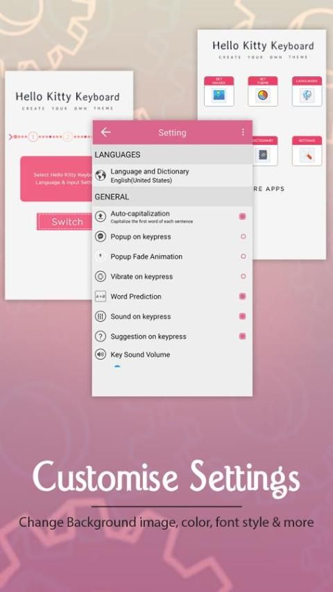 Kitty Keyboard adalah sebuah aplikasi keyboard yang foto, yang dapat digunakan untuk menyesuaikan kata kunci Anda dengan beberapa tema sempurna keyboard, untuk memberikan tampilan berkelas.