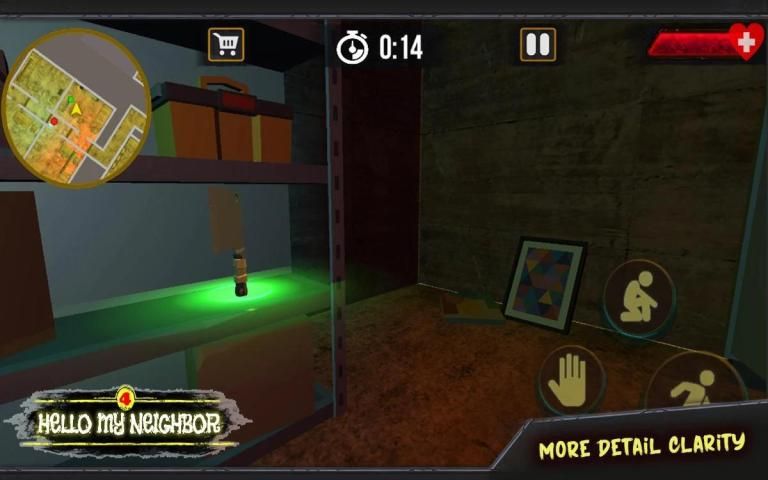 the secret neighbor keeps you locked in his the basement, Try to hide and seek your way to escape from the scary neighbor. Don't make any noise or scream Or even you say hello, You have to depend on the map in order to know where to find the key or tools In order to open the door and escape And knowing where there is The scary neighbor to avoid it so that it does not see you, You have to prohibit from the secret neighbor when he says hello hello do not answer him.