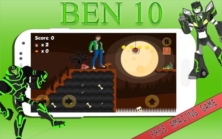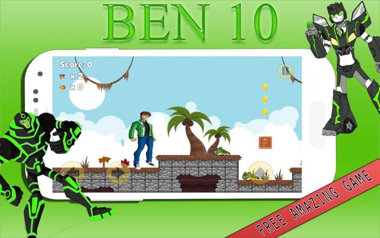 Untuk menyelesaikan permainan platformer super ben 10 (sepuluh) akan melompat dan menjalankan kecepatan sampai dengan superhero ben albedo pada banyak rintangan, melawan dan menembak melawan ninja api terbang, kelelawar, reboot, sepuluh, Humungousaur, kerangka, kevin 11, Hiu, gwen Tennysons mainan, Omnitrix kekuatan dan Omniverse banyak monster lainnya kekuatan Omnitrix