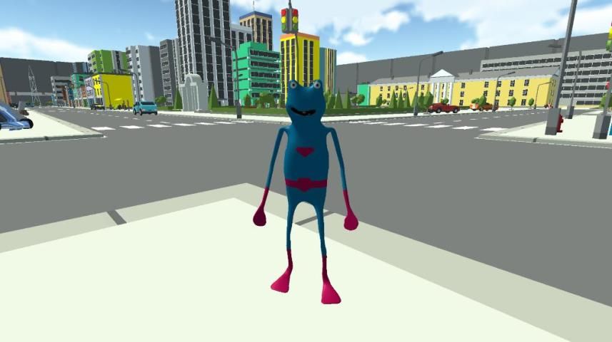 In Hero Frog Sandbox you will be a frog. You will be exploring your town in very funny and interesting ways. You can shoot the frog from the cannon. Explode everything.