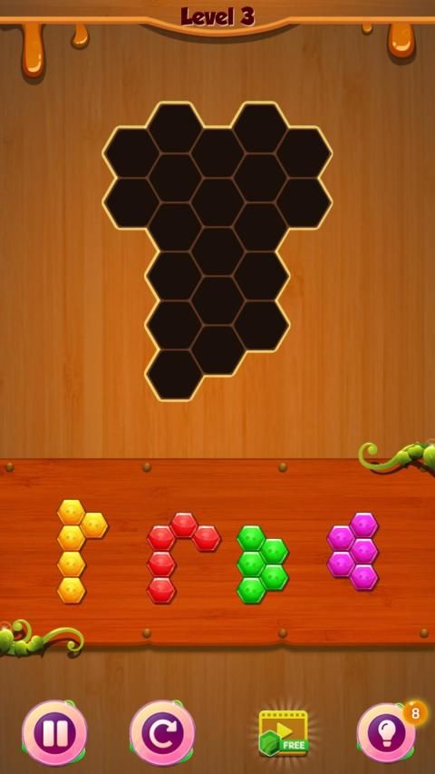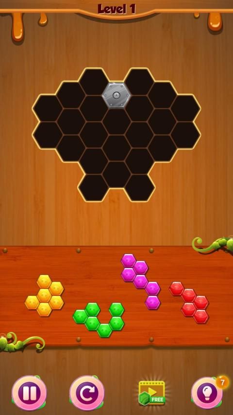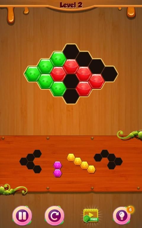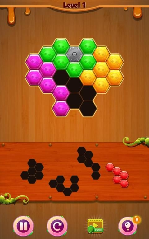 Helps to drag the Hexa blocks into the board to fill the voids and match up with each other with the Classic Hexa Puzzle